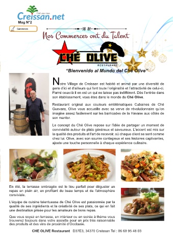 CHE OLIVE Restaurant D37E3, 34370 Creissan Tel : 06 69 95 48 03